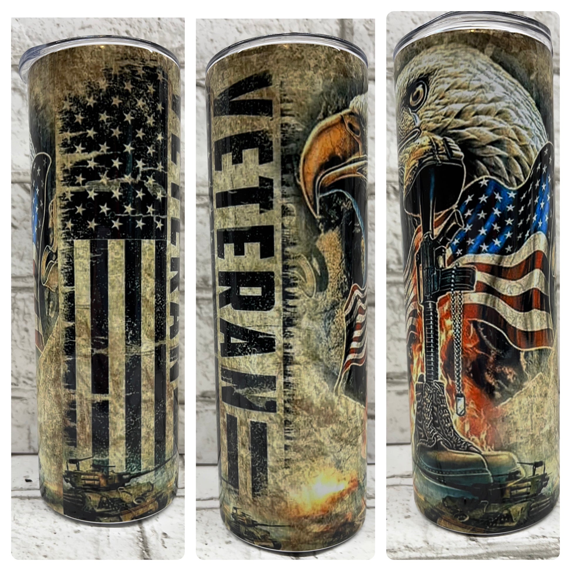 20 Ounce Skinny Tumbler - Veteran- Eagle - Flag