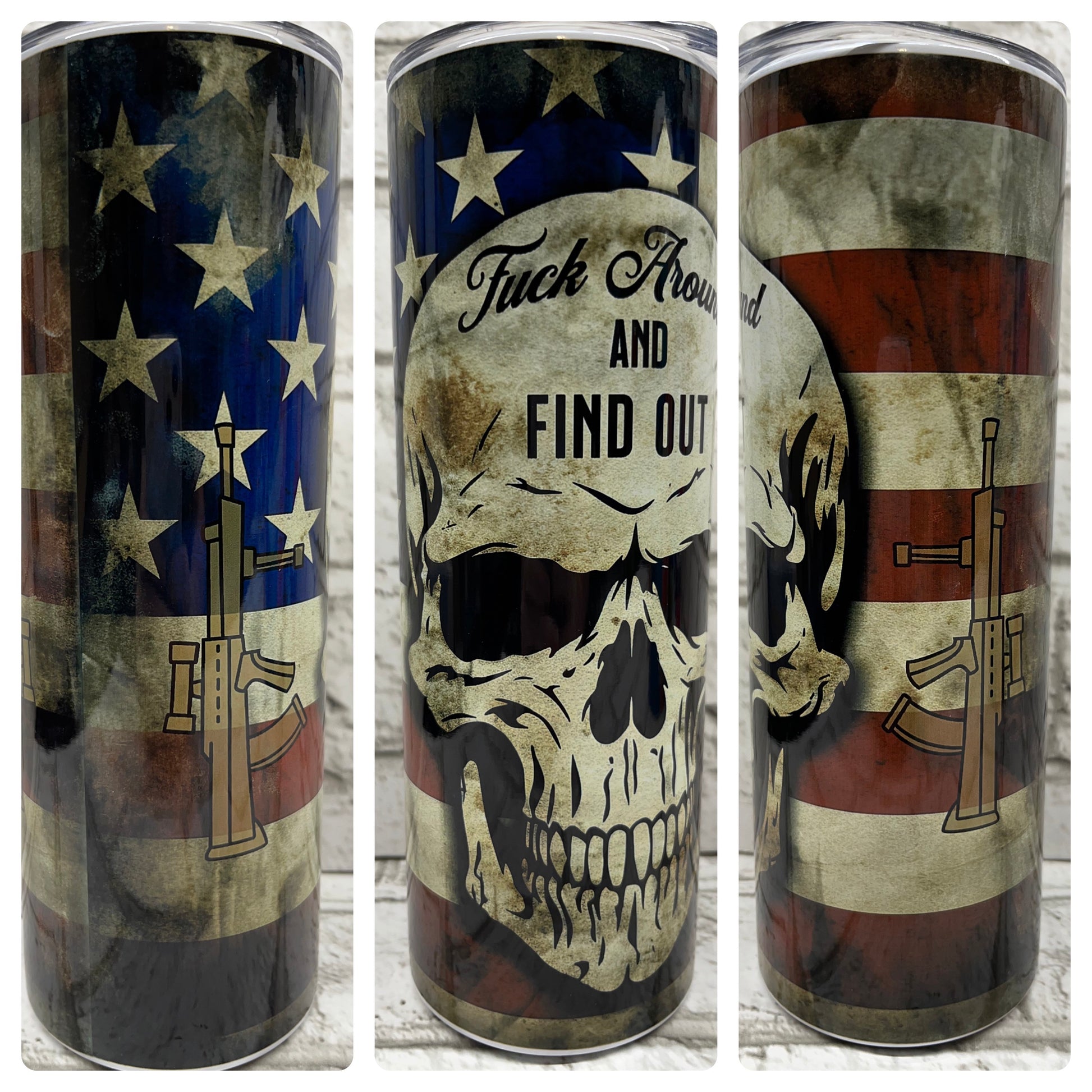 20 Ounce Skinny Tumbler - Skull - Flag
